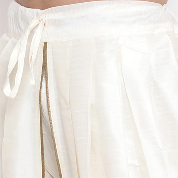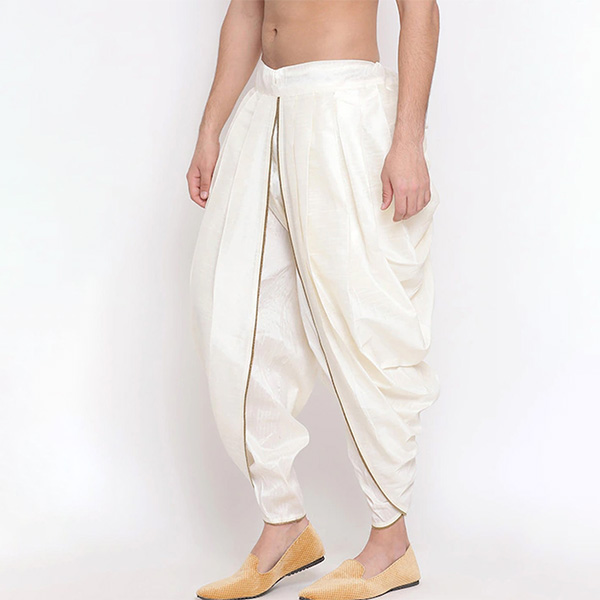 Dhoti is the traditional attire for men across India. It has marked its presence in various functions and proceedings. The silk fabric makes it appear richer and more sophisticated. Pair it with maroon kurta for complete look