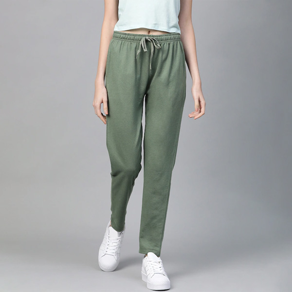 A pair of greenand white side stripe solid track pants, has 2 zip- pockets, an elasticated waistband with a drawstring fastening